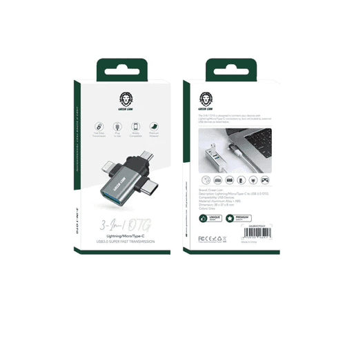 The Green Lion 3 in 1 OTG is designed to connect your devices with Lightning/Micro/Type-C connectors to, but not limited to external USB devices. This OTG can transfer data in the super fast data transmission mode, so you can rely on this OTG to share your data in the fastest of the time. Fast date transmission, plug to use etc.